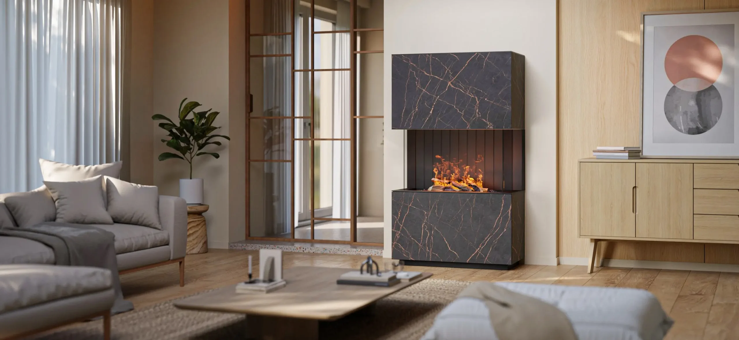 Die Optimyst®-Technologie, die hinter dem Flammenspiel steckt, basiert auf einem Wassertank. Dieser kann einfach entnommen werden und mit Wasser befüllt werden. Für den Flammeneffekt wird das Wasser per Ultraschall fein vernebelt und durch einen warmen Luftstrom nach oben geleitet. Sparsame LEDs strahlen den Wasserdampf dabei von unten an. Das Ergebnis ist ein täuschend echtes und dennoch völlig harmloses Flammenbild. Noch realistischer wird der Effekt in Kombination mit täuschend echten Holzscheiten aus Keramik, die die Flamme zusätzlich verwirbeln.